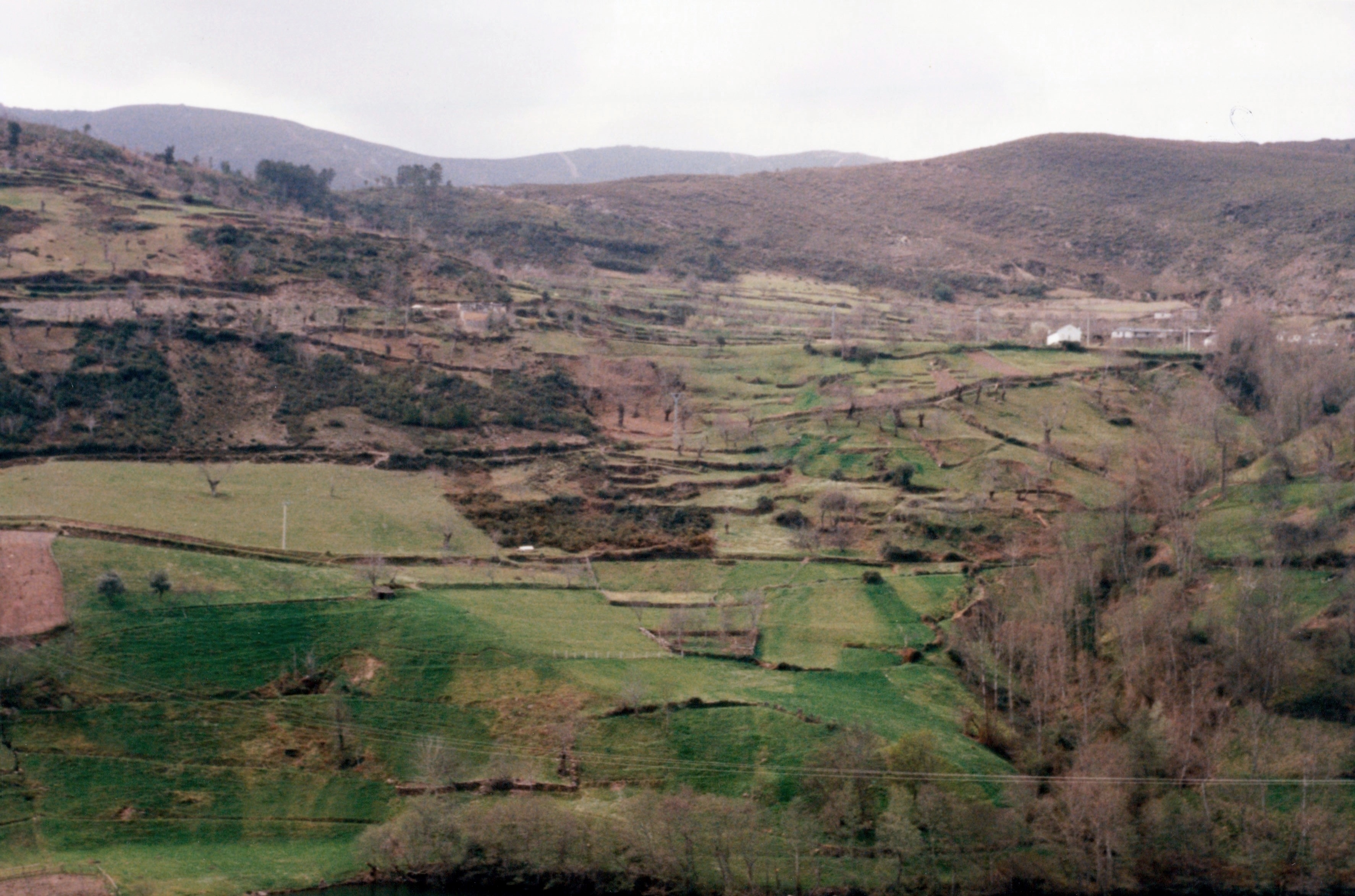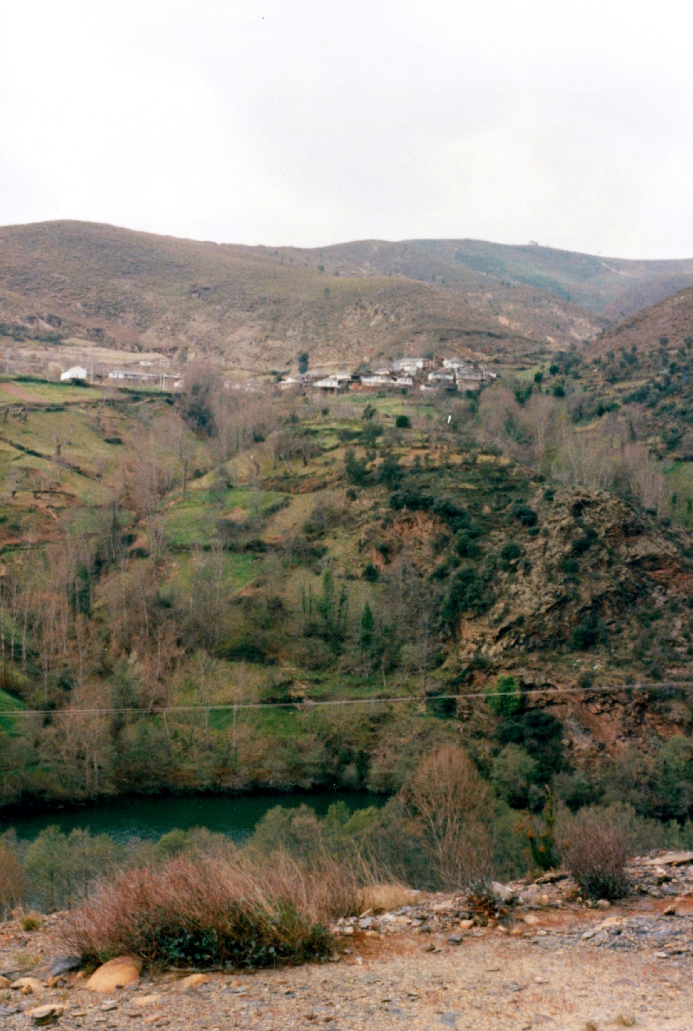 We have decided to go west through Northern Spain to see Galicia and the Picos mountains. The countryside in early spring is very green. We begin to climb into the hills and get views north and south of bare limestone crags. Our first night is in Oviedo, an industrial centre in Northern Spain. We ride the next day high into the hills; it is fine but the spring is no further on than it had been in Streatham. We would have to wait until we reached Seville until we saw blossom again. We stop for coffee by a dam and are shown the roads we should take along the main coast road. At the moment we are in no hurry and take only minor roads indicated on the Michelin map in yellow. We are settling in to our long journey. Leigh and I have travelled together a few times before during holiday trips through Europe but realise that this will be very different. At times we may be heavily reliant on one another and could easily come back not the buddies we once were.