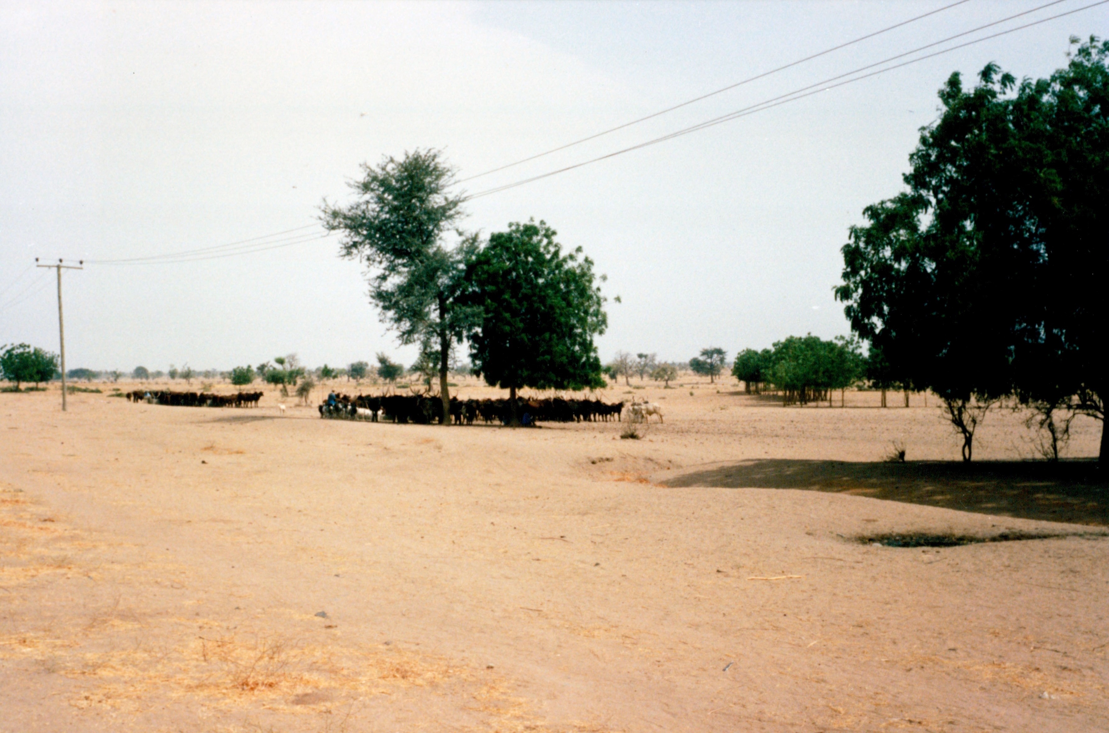 We arrive in Tahoua battered and depressed. We get petrol and buy some fruit and visit the police. We try to find the campsite and are dragged around town by a boy on a bicycle. He takes us first to a couple of places before we are shown the camp itself which is set in an amphitheatre. We give the boy some money and he asks for some pineapple. I churlishly and stupidly refuse even when he asks again. We shower and take the bikes into town for a meal. There we have a disjointed discussion about what is wrong. We return to the camp and sleep under the stars. The next morning, I awake and immediately realise my leather jacket is gone. We both wander around looking for it. Leigh finds it under a tree with only my passport inside. I go off to the police station in Tahoua and report what is missing. The police decide to come to the camp ground as they have had a lot of trouble there recently and escort me back by a different route. On the way we pass a knot of people and stop. Lying on the ground is the rest of my stuff including the cheques but minus the cash. I am amazed to have got this much back and follow them into the camp where they immediately arrest the three guards. Leigh and I agree that we have seen the last of the cash and we just want to leave. The police are taking the campground owner to task for all the thefts that are occurring from tourists and we say that as far as we are concerned the matter is over and we do not think that it was the guards anyway. We are sure that it was the boy on the bike as he had seen me pay for petrol from a thick wad of recently changed cash. He also saw that I kept the wallet in my leather jacket which I had foolishly not put in my sleeping bag. Not a great performance all round. We are pleased to leave and I celebrate by falling off trying to avoid a car that turns right suddenly.