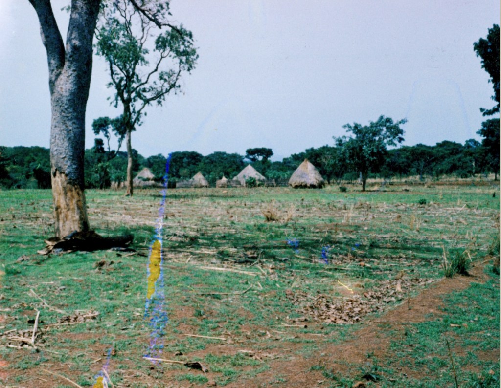 Leigh has a cold which by the middle of the night has turned into a major bout of shivering and by the next morning he is wearing two jumpers and sweating profusely. We work out from one of our disease survival books that he probably has got some form of malaria. While he rests the next day I go round the town in search of a boot repairer. Later on that day we meet two Peace Corps workers whose parents are staying and we voraciously consume the relatively recent copies of Time and Newsweek that they have with them. We head off south on dirt roads next day passing two road blocks before we even manage to leave the town. At our first stop three hunters have just shot a monkey and carry it slung over their shoulder. They laugh at us when we say that we have no way of carrying it or cooking it and continue down the road to their village. We potter on slowly and reach Tibati by mid-afternoon.