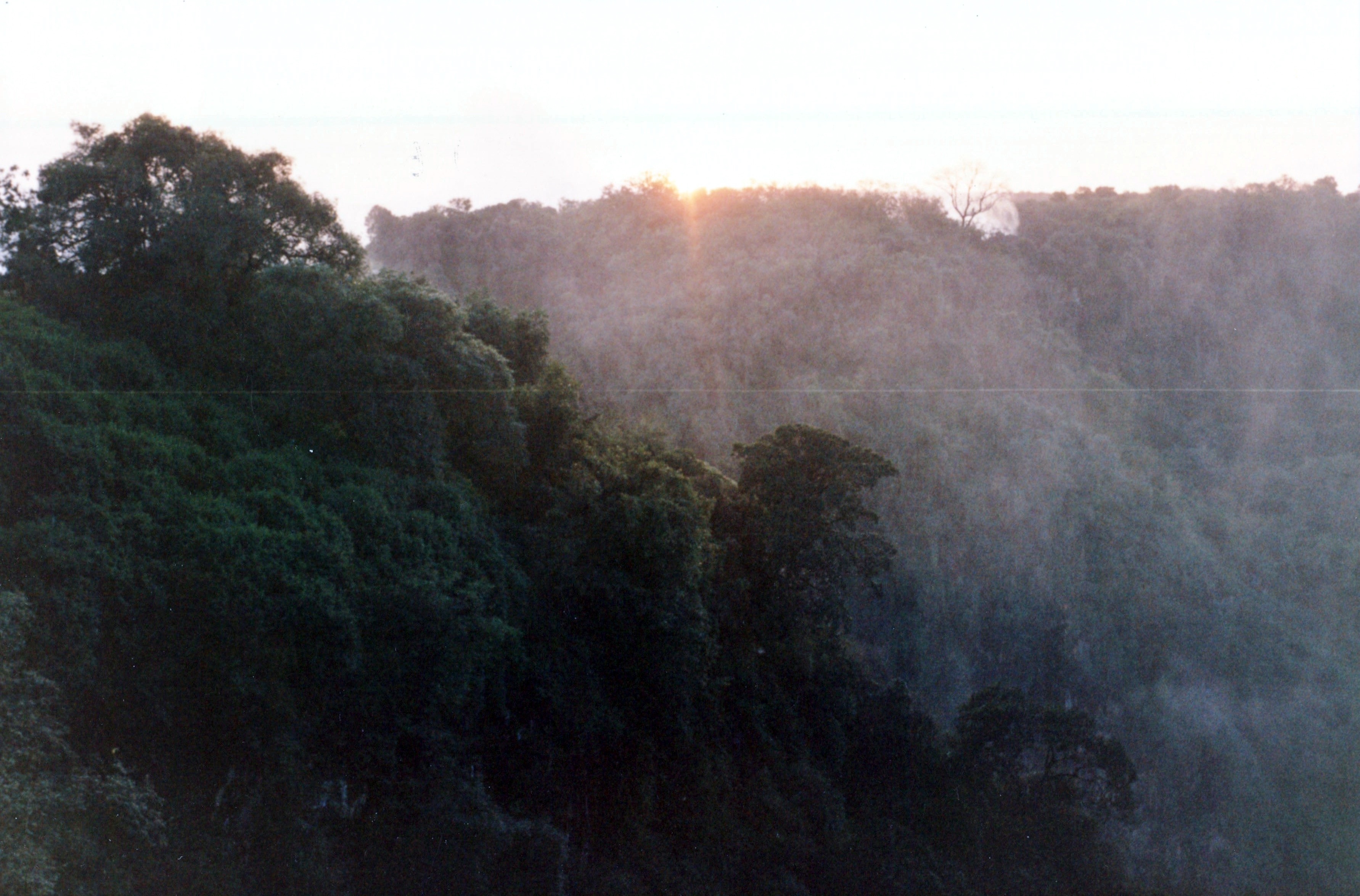 We continue very slowly. Leigh’s exhaust baffle has split and the header pipe keeps falling off. We stop to fix it and are attacked by a swarm of tse-tse fly. We stagger on to the town where our charms fail to work on a shut bank. We have $10 in cash undeclared and change it for 1,500 shillings with a Danish aid worker and with this we buy food, fruit and petrol. That night we camp in the bush and awake to the finest sunrise.