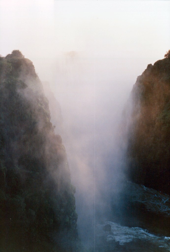 The evening in the Hotel will fade from the mind very slowly. The Hotel is not anything remotely related to the Africa that we have passed through but tonight that scarcely matters just as the pizza in Marrakech scarcely mattered. The hotel is stunning with chandeliers, white walls and enormous rooms off each corridor. No one cares that we are wearing forbidden informal footwear known as “tackies” or that we clearly come from the campsite. We sit on the terrace amazed to be here and tell most of the improbable stories of our journeys to date. Below is the outside dining area where the residents are finishing off their evening meals. Farther on are the Falls themselves and there is a full moon rising above the spray. Under a canopy a steel band is playing.