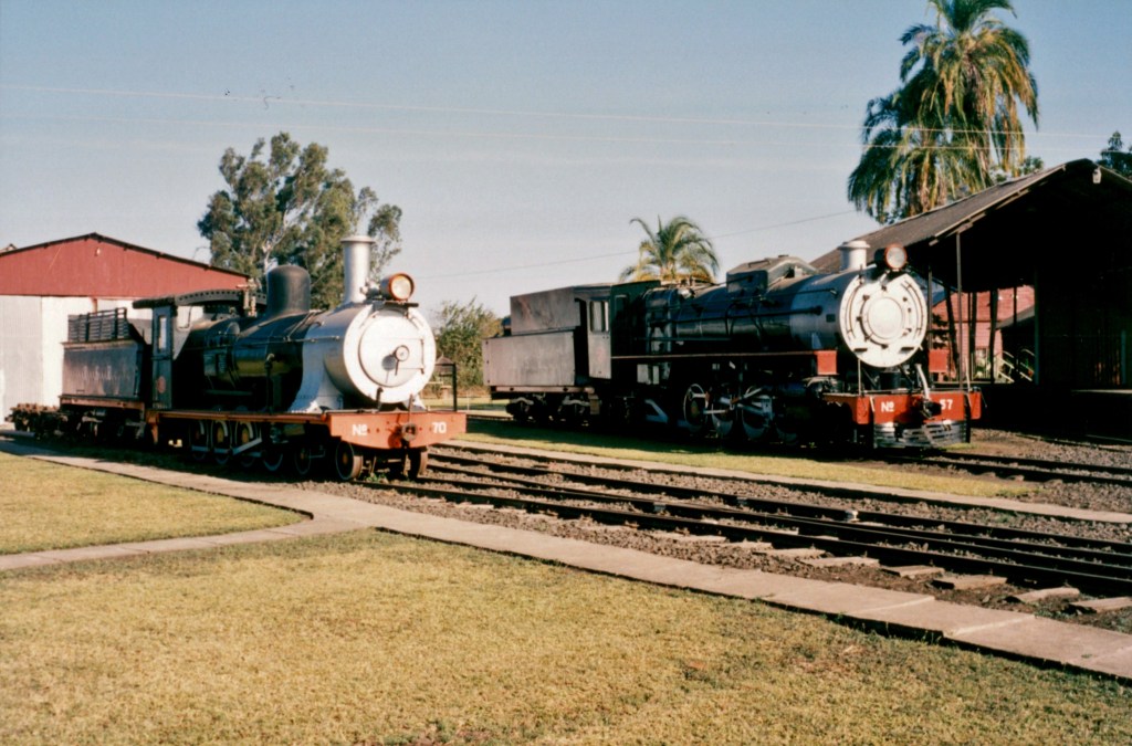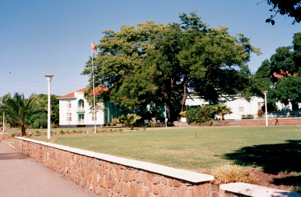 We decide to cross into Zimbabwe to get a view of the falls from the southern side but head off into Livingstone first. The town is set back some three miles from the river and has wide tree-lined streets and old low shops arranged in blocks each with its own individual facade. We have lunch at the busy burger bar and then visit the Railway Museum.
