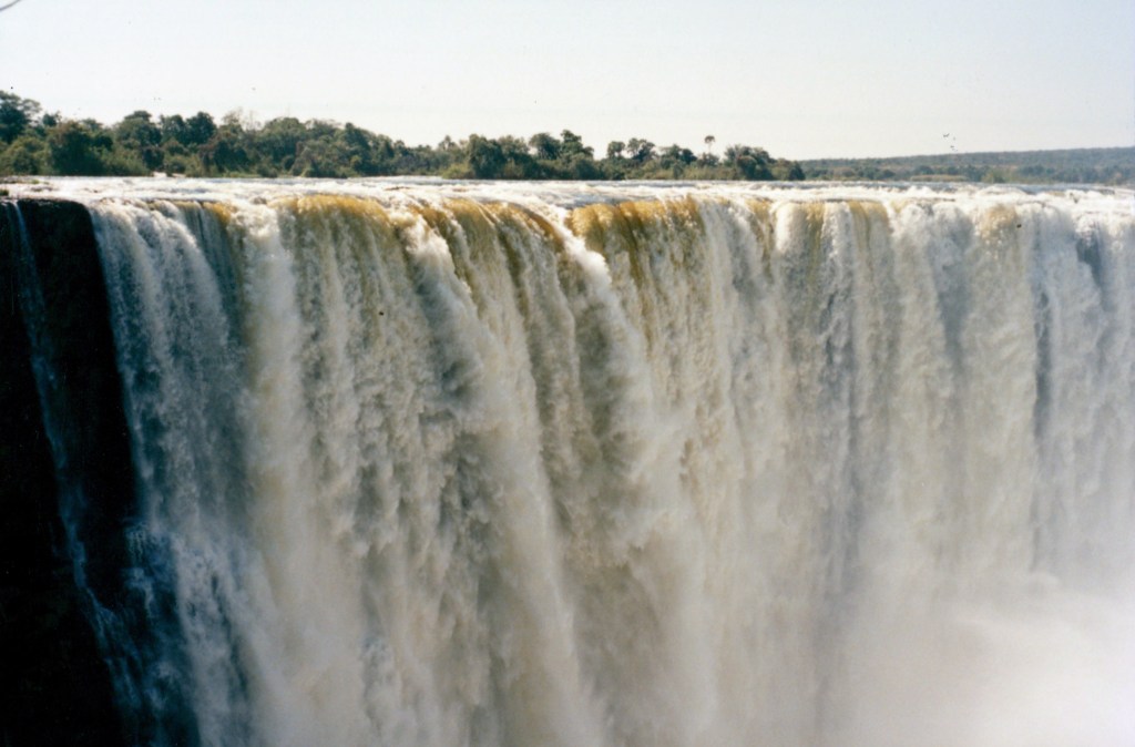Next morning we return for a protracted eat-all-you-can breakfast. We wander down to the falls again and its sheer immensity can be seen clearly for the first time. The main ridge over which the water cascades runs for nearly two miles across the river before reaching the north bank.