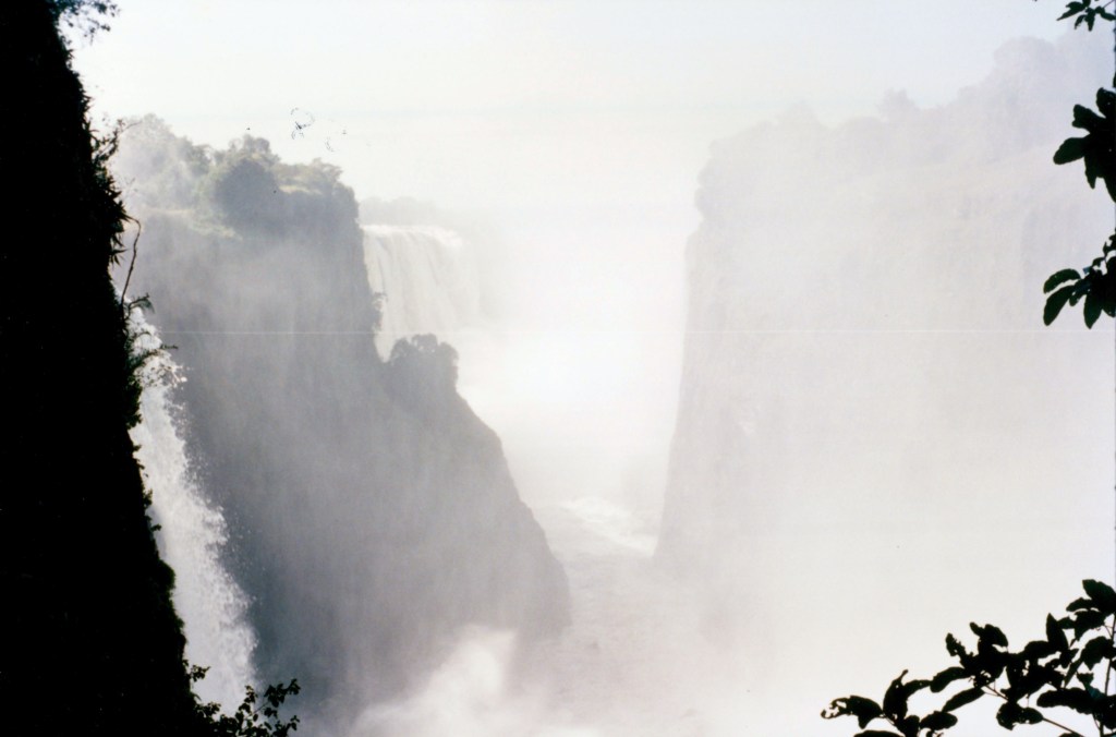 We reach Livingstone having done 400 miles for the second day in succession and with ease. That night we stay in the comfort of a rondavel, a circular African hut, by the river close by the Victoria Falls. Next morning before dawn we walk down to the Falls – the noise of which we have been able to hear since we arrived. We sing and whistle the old Eddie Calvert song Zambezi as we stumble around in the half light and are hysterical with excitement as we get closer. There is a walkway to an island from where you can see a small part of the falls themselves and get soaked by the waves of spray that rise over a 1,000ft above the tumultuous river. The whole scene is so vast and obscured by water vapour that it is hard to get a real impression of just how massive the falls are. It is left to the overpowering roar of billions of gallons of water falling a quarter of a mile to remind you just how powerful the scene is. By the time we get back we are soaking wet from the vapour and shiver throughout breakfast until we dry out.