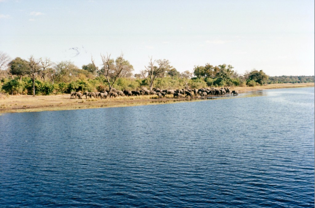 We set from Victoria Falls after lunch and drive the seventy miles to the Botswana border arriving there by mid-afternoon. We and the bikes are hosed down with disinfectant to prevent the spread of foot and mouth in this cattle-dominated country.