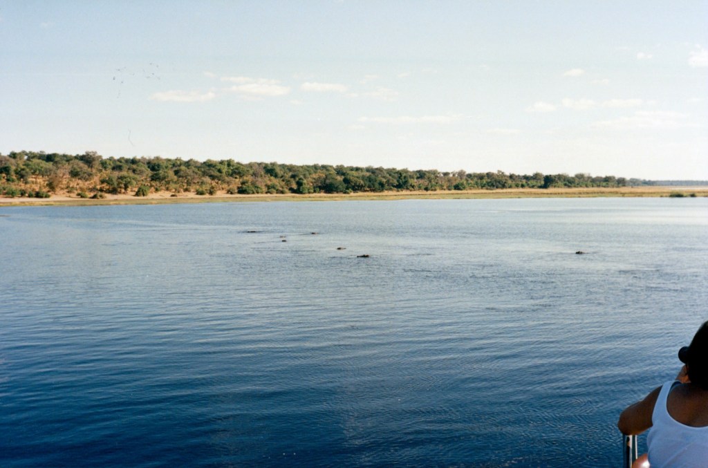 The second week, the two of us hitchhike up to the Chobe Game Park back up near Kasane in the far north and we manage to see hippo, elephant crocodile and a fish eagle. We fail, however, to hitch over to Maun and the Okavango Delta and Leigh goes there the next week on the plane. While he is there, he falls ill with malaria which was probably contracted when we passed through the chloroquin resistant parts of Southern Tanzania. He is rushed out of Oddballs camp in the Okavango by plane and then spends four days in Maun hospital and another week in Gaborone getting some strength back.