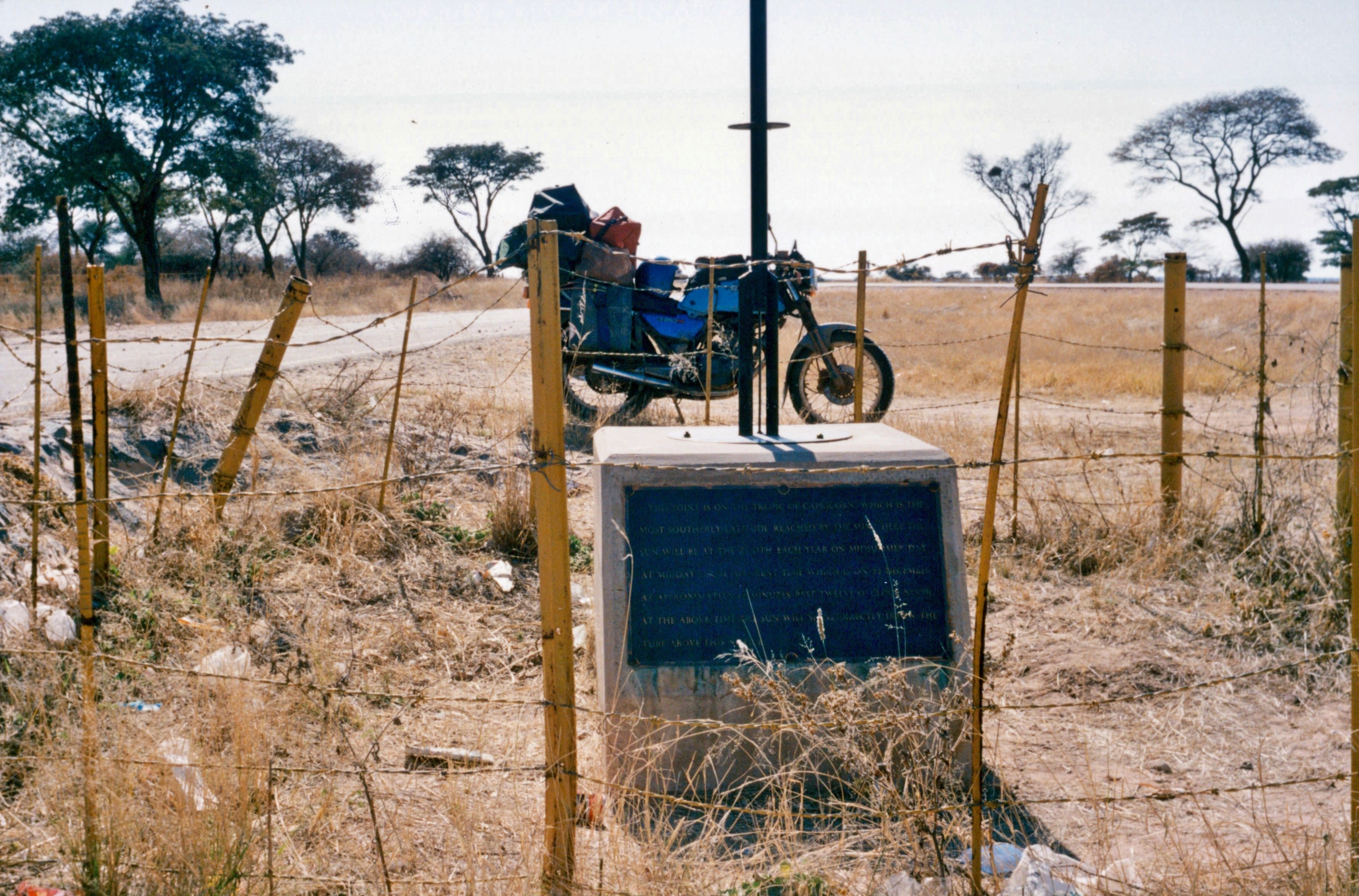 We approach Francistown and are stopped at a roadblock. All our bags are searched and we have a real job staying civil. We had not imagined that Botswana would be like this. We bolster our flagging strength with a large portion of chicken and chips and in the fashion of true troubadours climb aboard our trusty steeds for the last 437kms which we reckon that we can just about do before dark. As we leave Francistown there is another roadblock. Contrary to everything that we have learned in the last 10,000 miles I lose my temper and argue with the soldiers that there is no need for our bags to be searched again. We are told that we will have to wait until 3pm before we can leave. We argue some more and are then told 6pm. We tell them that they can keep us there as long as they want but we won’t cooperate with them and are told 3 days. I finally shut up and we have a cup of tea.